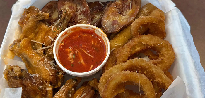(6) Onion rings, (4) Mozzarella sticks, (6) Wings and ( ...$19.00