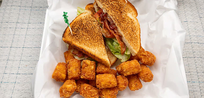 (Bacon, lettuce, tomato, and mayonnaise on white toast). Served with French fries, onion rings or tater tots.