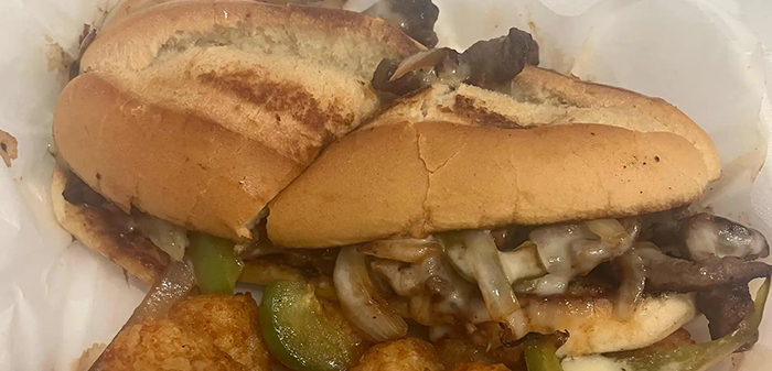 Steak, onions and green peppers with provolone cheese on a hoagie. Served with French fries, onion rings or tater tots. Substitute bowl of soup or salad add $1.75
