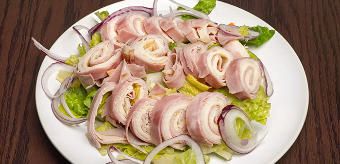 Roasted turkey, ham & Swiss.$10.75