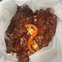 Chorizo (Mexican sausage), onions, tomatoes, cilantro, jalapeño peppers and cheese. Served with a side of sour cream & salsa.