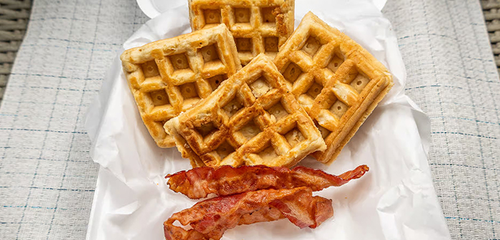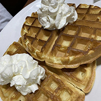 Served with butter and warm syrup (sugar free syrup upon request). Add blueberries, pecans, strawberry topping. Chocolate chips or Reese’s for $.75 each. With bacon, sausage or ham add 2.25