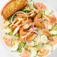 rich and creamy made to order. Served with your choice of soup or salad and garlic toast.