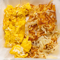 Add ham, bacon or sausage links or patties for additional price. Served with choice of hash browns or home fries and toast. Add sausage gravy on your hash browns or