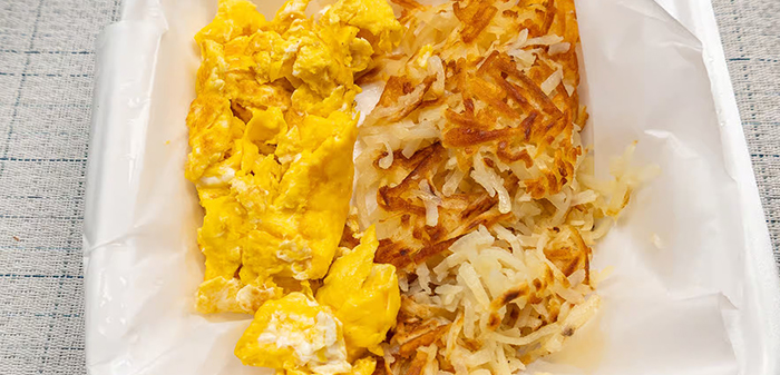 Add ham, bacon or sausage links or patties for additional price. Served with choice of hash browns or home fries and toast. Add sausage gravy on your hash browns or home fries for $2.75
