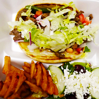 Gyro with fries and drink. pita, sauce, meat, lettuce, ...$13.99