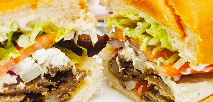 Filled with tender slices of seasoned meat, fresh veggies, and a dollop of creamy tzatziki.