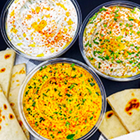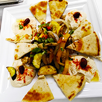 Hummus, spicy feta and eggplant.$10.99