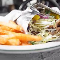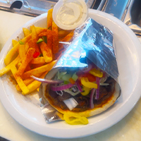 Chicken gyro with fries and drink. Pita, sauce, chicken ...$13.99