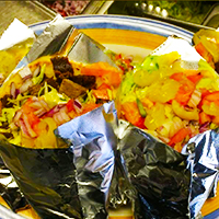 Tortilla, sauce, meat, lettuce, onion, tomato, and blac ...$8.49