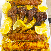 3 pieces of lamb, rice and salad. Flavored rice, extra-ultimate Yemeni lamb roasted the fall of the bone. Lamb is ultra-tender and slowly roasted. Served over mandi or Zorbian rice.